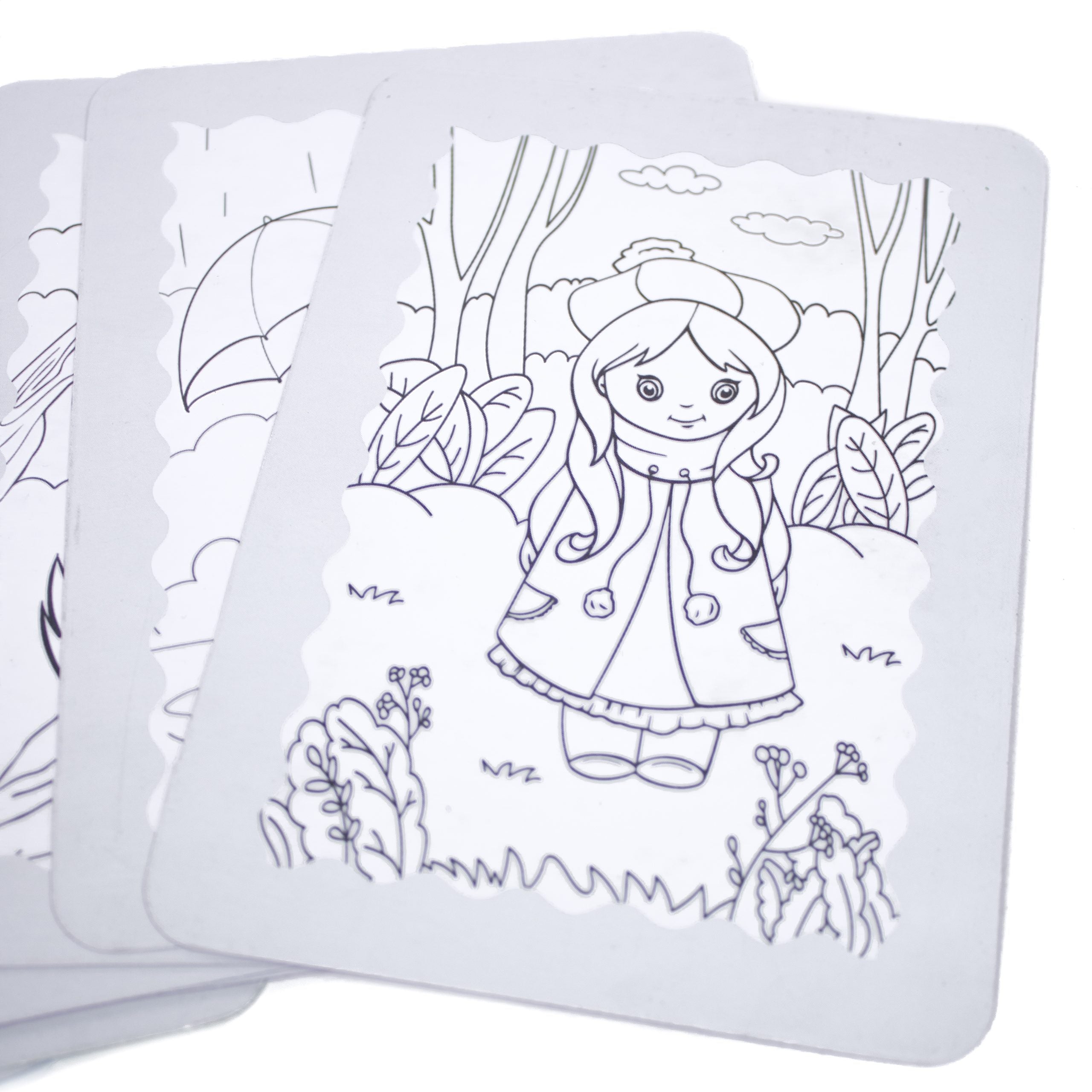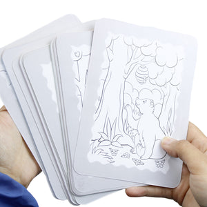 4. انشطة ترفيهية : خلف كل كارت يوجد رسومات يلونها الطفل لكي يكون نشاط محفز له يستخدمه بين كل تمرين والآخر.
