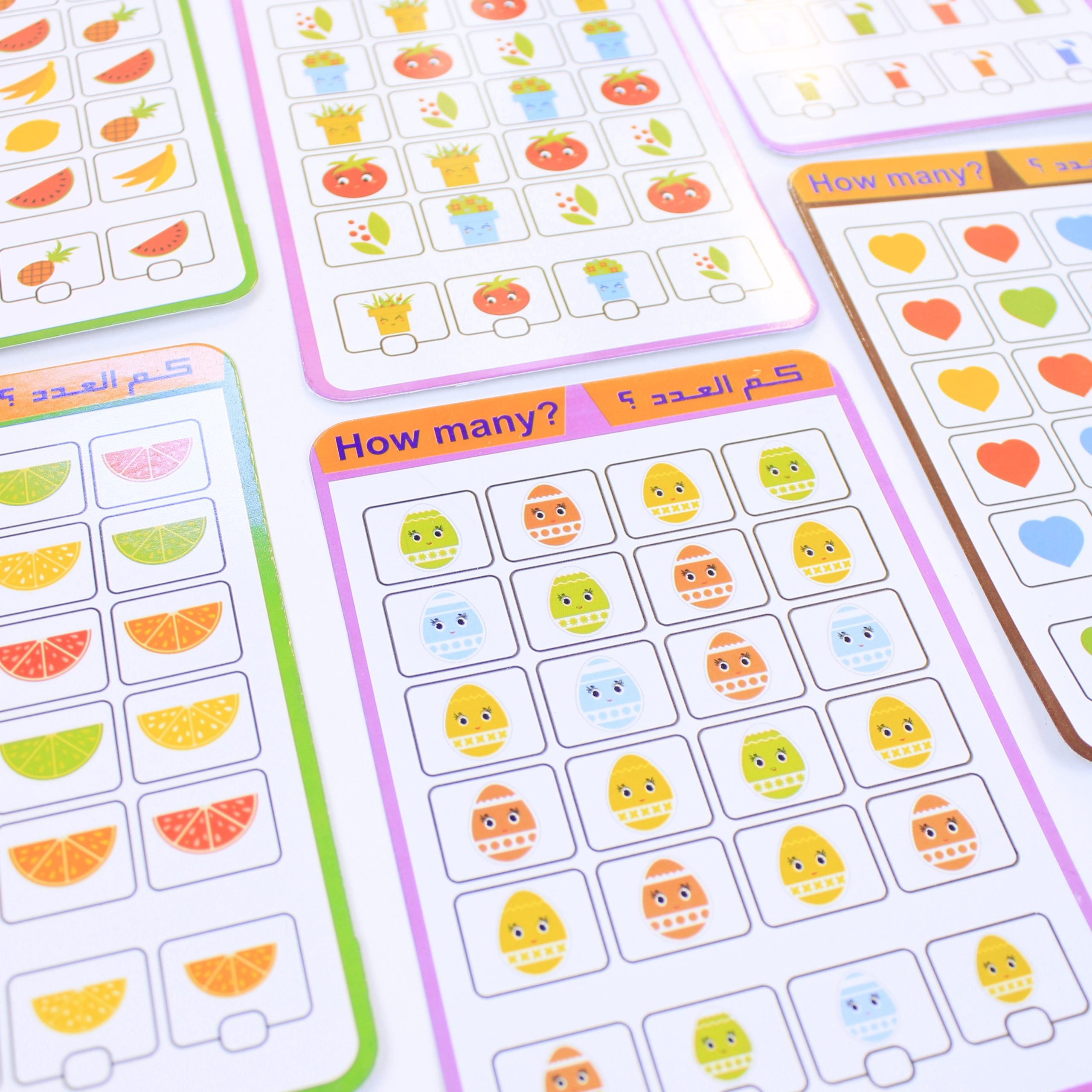 بطاقات كم العدد يمكنك من خلالها تحسين قدرة طفلك على العد وقدراته البصرية والعقلية بالتدريب عدد مرات لا نهائي