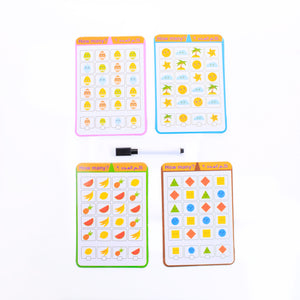 1. تحسين قدرة العد : البطاقات تحتوي على أشكال مختلفة بألوان متنوعة ويعد الطفل كل الاشكال المتشابهة في اللون والشكل وكتابة عددها