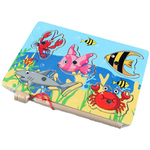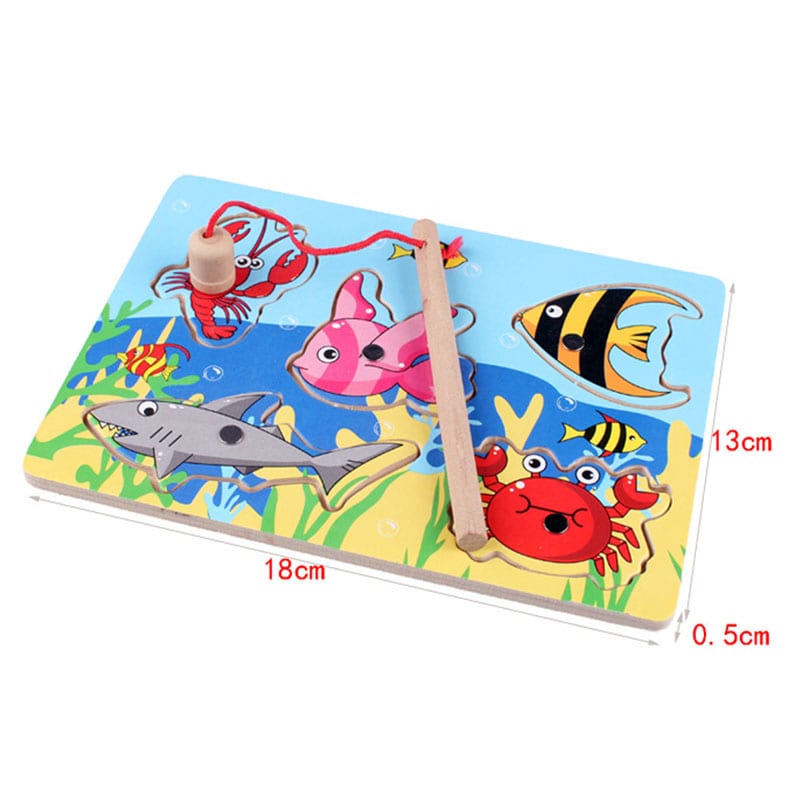 اللعبة مكونه من مسطح خشبي عالي الجودة , صناره و اشكال اسماك مختلفة