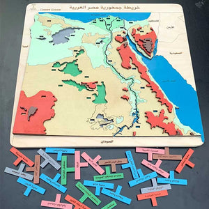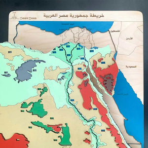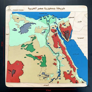 الخريطة عبارة عن بازل يمكن للطفل تحريك كل محافظه واعاده تركيبها في موقعها الصحيح