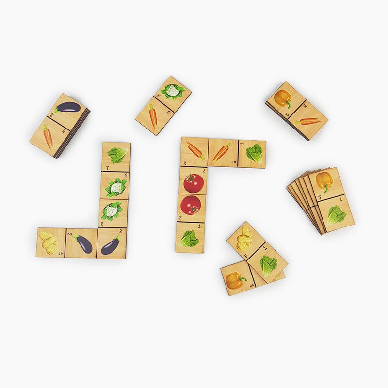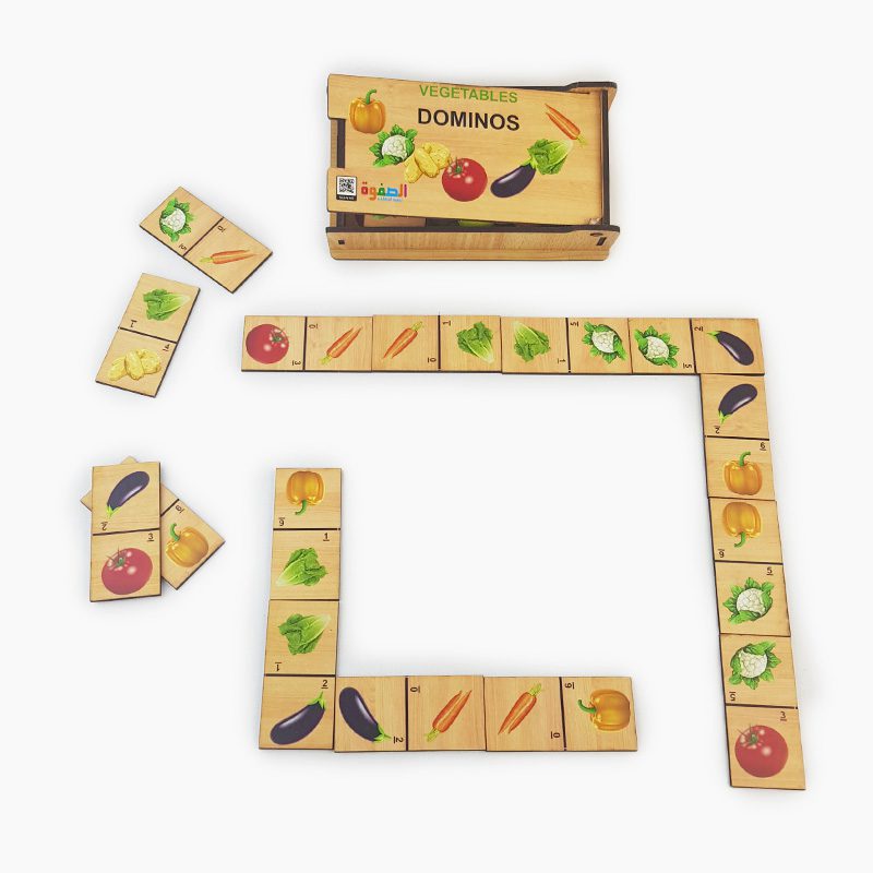 الدومينو لعبة جماعية ممتعة لكن يمكن ان تكون مفيدة بتعلم شئ مختلف تساعد الأطفال في تعلم الأرقام وأنواع الخضروات