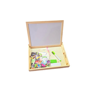 • والوجه الآخر للسبورة المغناطيس سبورة طباشير يستطيع الطفل الكتابة عليها