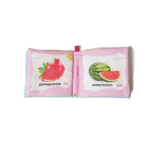 بداخل كل صفحة صورة لفاكهة مختلفة واسمها باللغتين الانجليزية والعربية