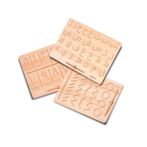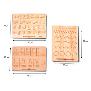 مجموعة لوحات التتبع الخشبية للحروف والأرقام العربية 3 قطع