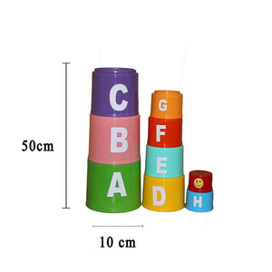 - مقاس الاكواب عرض اكبر كوب 10 سم و الارتفاع الكلي لل 9 اكواب 50 سم