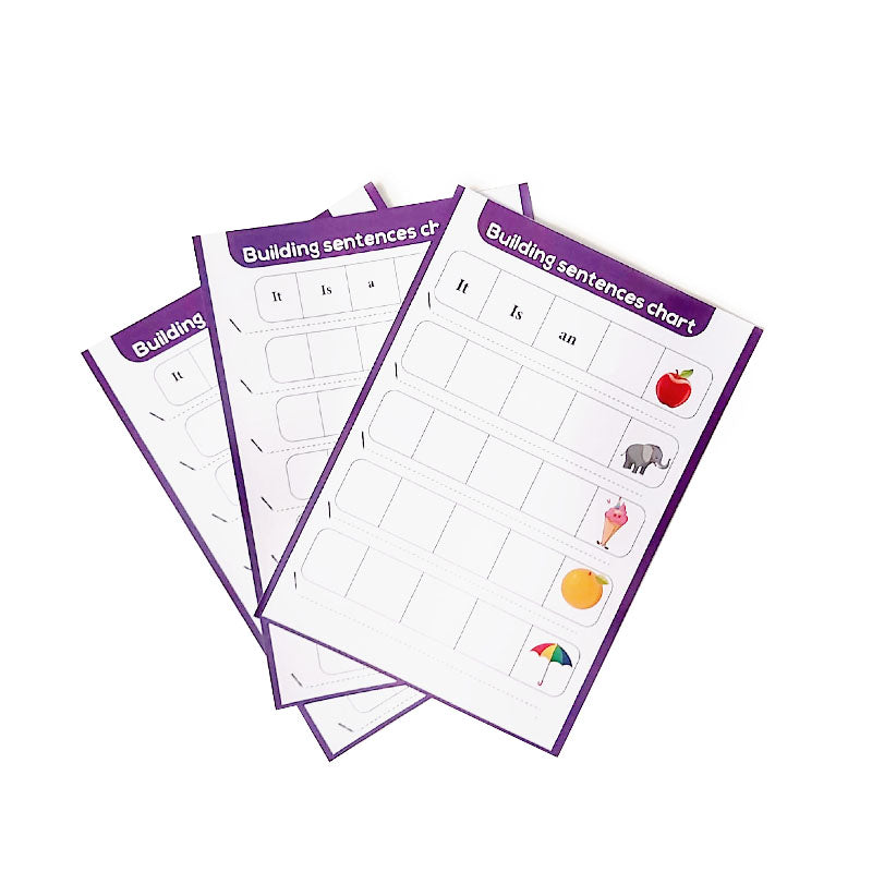 الملحقات هتساعدك في تدريب الطفل على: تكوين جملة مكتوبة، تكوين جملة شفهيًا، وجملة في شكل بازل ممتع.