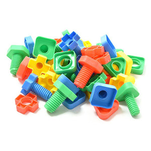 1. تعلم التطابق: من خلال محاولة الطفل تطابق اشكال المسامير والصواميل وتركيبها حسب كانت مثلث او مربع او شكل سداسي