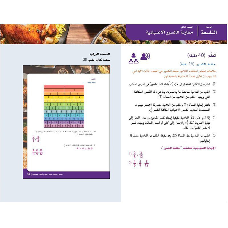 سيستطيع المقارنة بين قيم الكسور المختلفة وسيتعرف ويكوِن بيديه الكسور المتكافئة