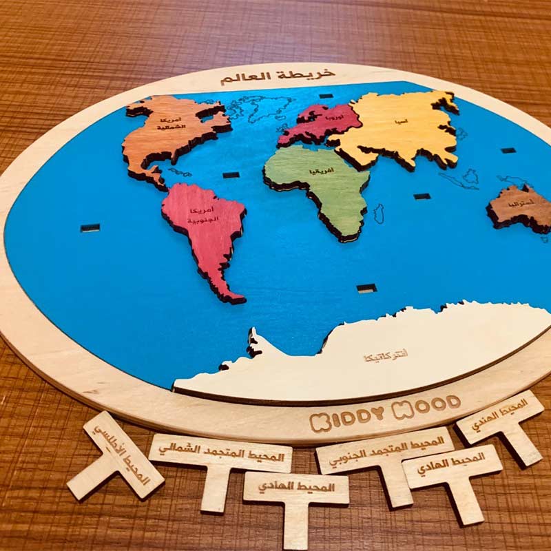 6. تتوفر خريطة العالم باللغتين العربية والانجليزية