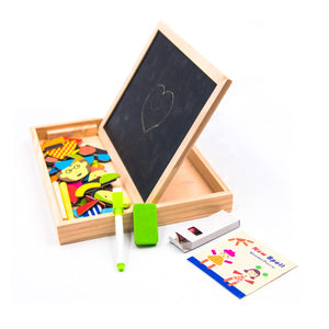- والوجه الآخر للسبورة المغناطيس سبورة طباشير يستطيع الطفل الكتابة عليها