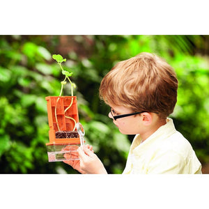 - فيرى الطفل جذور النبات وهى تتطور داخل الحاوية الشفافة التى تشتمل على التربة