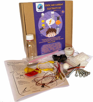 تم تصميم مختبر المطبخ لتحويل مطبخك إلى مختبر كيميائي ممتع وتعليمي! معبأة بمجموعة متنوعة من التجارب المثيرة، بما في ذلك فصل الألوان في الحلوى، ومؤشر ال pH، والتبلور، والمزيد، ستشعر هذه المجموعة بفضول طفلك وتعلمهم عن العلم الذي يقف وراء الظواهر اليومية. مع التعليمات السهلة الاستيعاب وجميع المعدات اللازمة المضمنة، سيرغب العلماء الصغار بقضاء ساعات من التعلم الترفيهي والممتع في المنزل. - مجموعة الكهرباء الساكنة والتيار الكهربائي:
