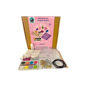 - تتكون اللعبة من قالب سيليكون - جبس أبيض - 16 دبوس تعليق - فرشاة تلوين - 2 جليتر - 6 ألوان - حلقات توصيل - سلاسل من المعدن والجلد - صمغ - قفل سلسلة