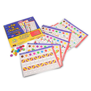 - تشتمل اللعبة على 16 كارت - _ 8 كروت مطبوعة على الوجهين ، 2 كارت نموذج اجابة ، 16 حلقة بلاستيكية ملونة للمطابقة و كتيب لشرح طريقة اللعب