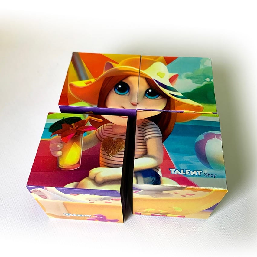 - مكعب بلاستيكي مطبوع ومصقول بستة اوجه مختلفة.