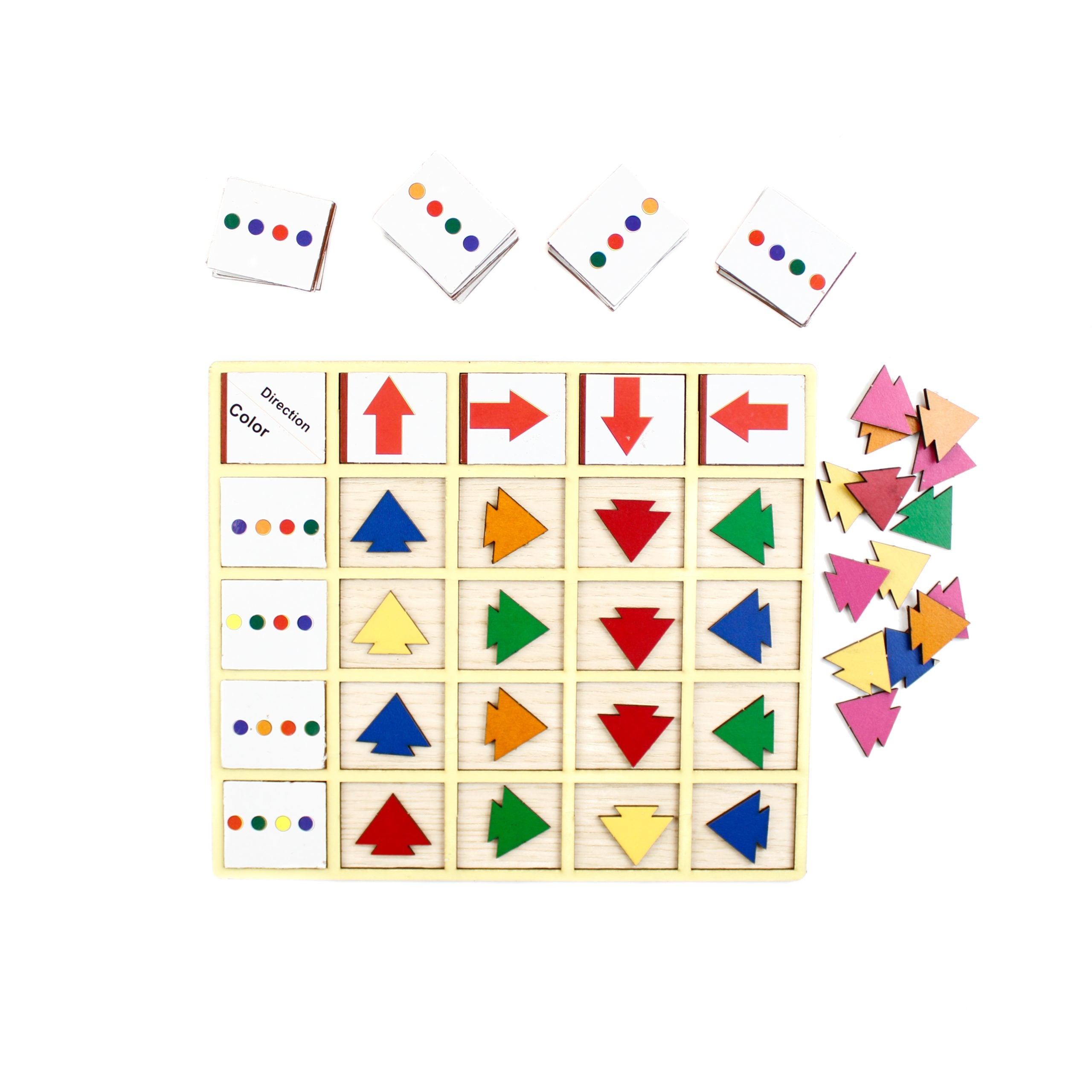 - نطلب من الطفل وضع الاسهم بالمطابقة مع الاتجاه واللون