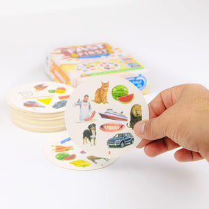 في كل كارت مجموعة صور مختلفة و بين كل كارت وكارت صورة واحدة مشتركة مطلوب من الطفل التعرف عليها