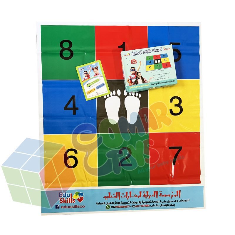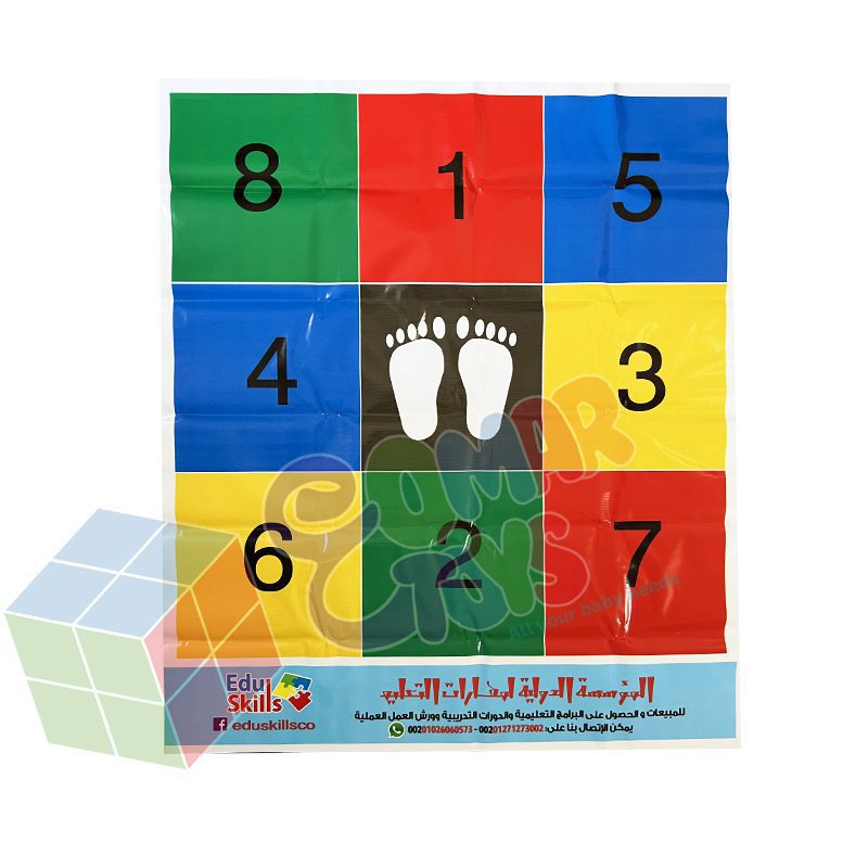 سجادة مكونة من 5 مربعات واحده لوقوف الطفل و 4 مربعات بأرقام متسلسلة ليقفز من بينها الطفل