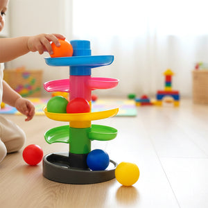 طور ادراك طفلك بالمنحدر الحلزوني لتجذب انتباهه في تتبع الكرات لفترة طويلة وتحفز حواسه البصرية والسمعية