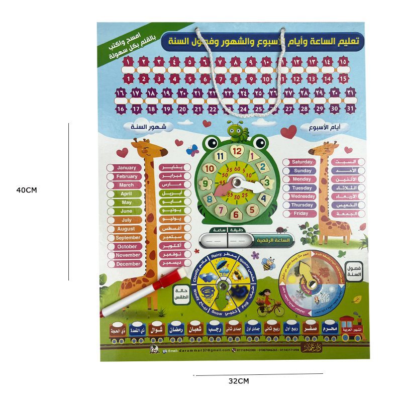 تساعد سبورة التقويم والساعة في تدريب الطفل علي أهميه الوقت والحفاظ عليه وده من أهم اسباب نجاح اولادنا