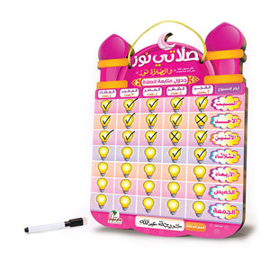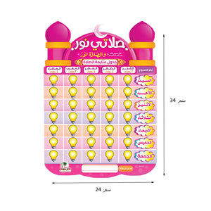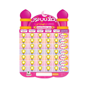 مع لوحة متابعة الصلاة "صلاتي نور" في لون روز للبنات، يمكن لطفلك أن يتعلم أهمية الصلاة والالتزام بها بطريقة محفزة وتفاعلية!