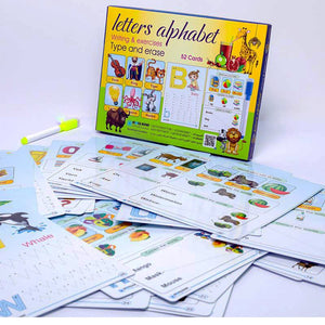 البطاقات تسمح بالكتابة مئات المرات وتحتوي على تمارين مختلفة لتعلم كتابة الحروف وكلمات جديدة