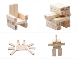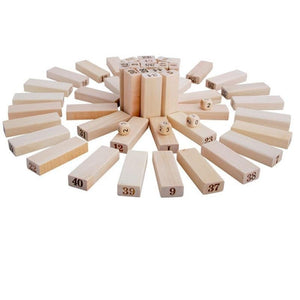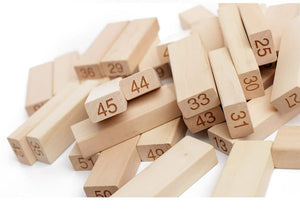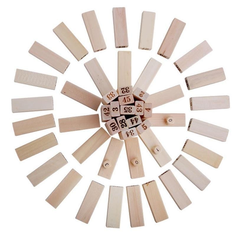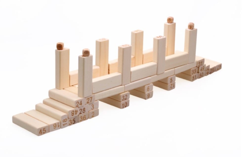 اللعبة عبارة عن مجموعة من القطع الخشبية وكل قطعة مرقمة برقم من 1 إلى 48 ومرفق معاها 4 قطع من الزهر.