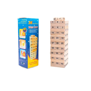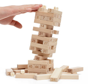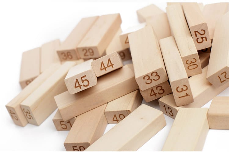 بعد تحديد الرقم يقوم اللاعب بسحب القطعة صاحبة نفس الرقم بيد واحدة بحرص دون ان يختل توازن المبني ووضعها على الطبقة الاخيرة من القطع.