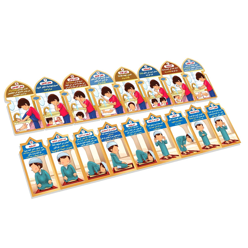 - يساعد الطفل على تذكّر وترتيب خطوات الوضوء والصلاة بسهولة.