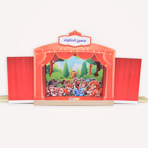 مسرح الحكايات التعليمي للأطفال مع علبة التخزين والخلفية الخشبية