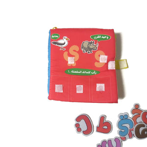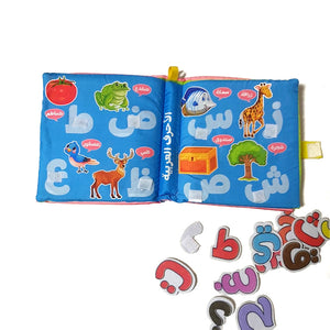 هذا الكتاب يساعد الطفل على التعرّف على الحروف العربية من خلال اللعب، بفضل قطع الحروف القابلة للإزالة وإعادة التثبيت، والصفحات المصممة خصيصًا لربط كل حرف بصور وكلمات تبدأ به.