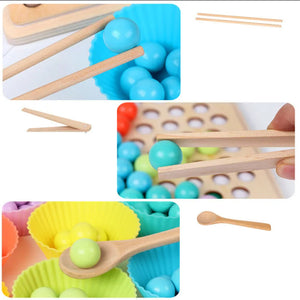لعبة BEAD HOLDER تتكون من لوحة خشبية مفرغه و 77 كورة ملونة و 7 قوالب سيليكون بألوان الكور و 3 معالق خشبية اشكال مختلفة و 5 كروت من الوجهين يوجد بهم اشكال يقوم الطفل بوضع الكرت تحت اللوحة الخشبية و يطابق الطفل لون الكور مع اللون الموجود على اللوحة