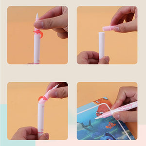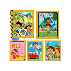 ⦁ في الصفحه المقابله تحتوي علي رسومات يقوم طفلك بملئ قلم التلوين بالماء ثم البدء في التلوين لتظهر الاشكال الرائعه ،يترك الطفل الكتاب بعد التلوين حتي يجف ويرجع لحالته الأولي يستطيع الطفل تلوين الكتاب عدد لا نهائي من المرات ثم يرجع لحالته الاولي