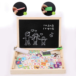 - وعلى الجانب السبورة الآخر سبورة بالطباشير يكتب عليها الطفل ويستطيع الدراسة عليها