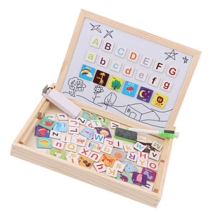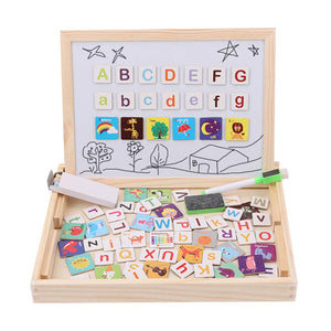 - تشتمل على قلم وقطع بازل للحروف الإنجليزية بألوان مختلفة يستطيع الطفل من خلالها تكوين الكلمات عدة بها
