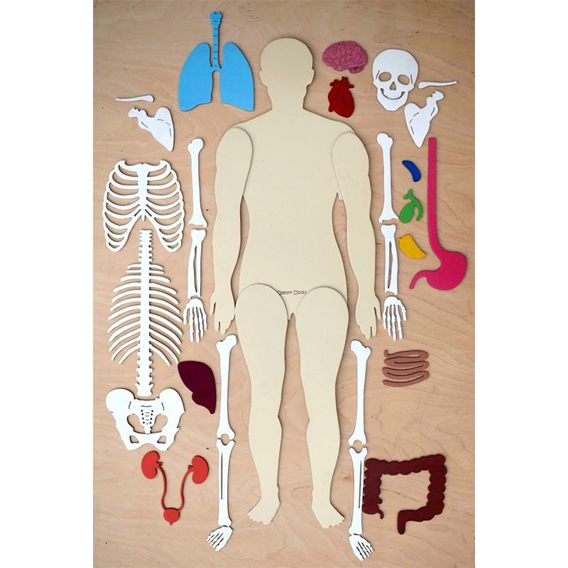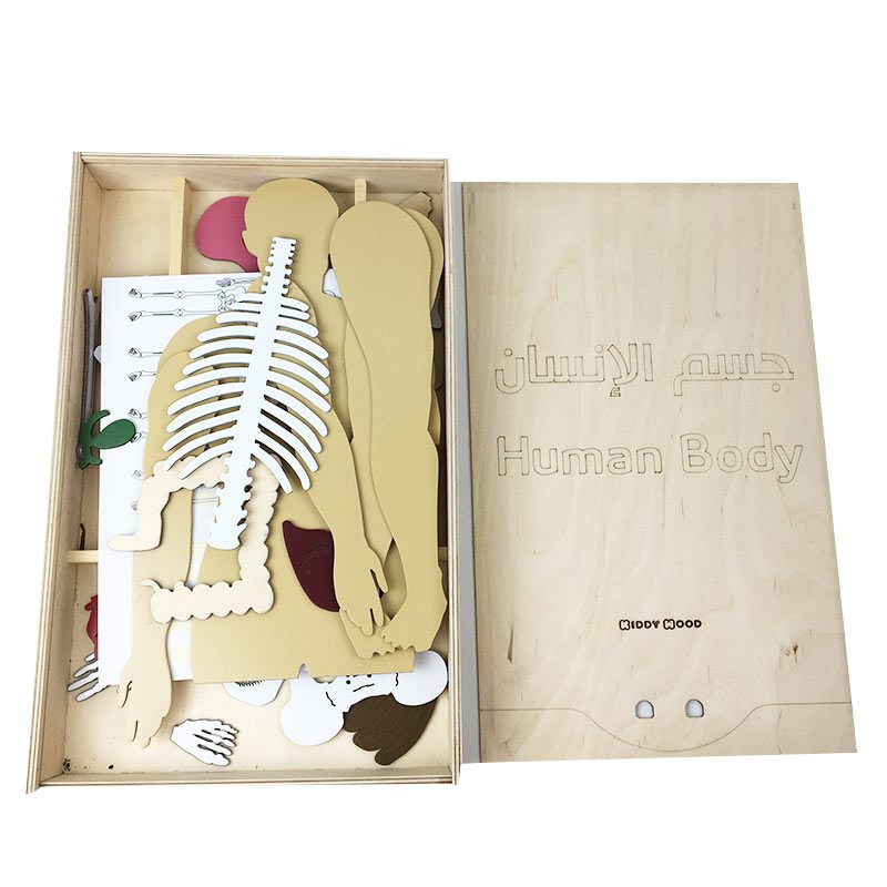 صندوق جسم الانسان خشبي يحتوي على كل مجسمات الأعضاء الجسدية ليتعرف الطفل على أجزاء الجسم ووظائف كل عضو