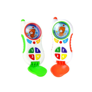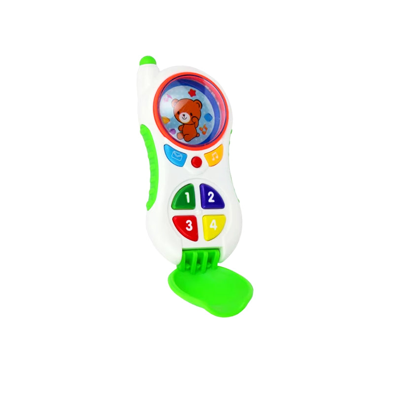 اللعبة عباره عن تليفون بحجم المحمول مناسب ليد طفلك به 2 دائره العليا بها صوره لدبدوب و السفلي بها 4 ازرار تلك الازرار تمثل النغامات المختلفه و ما بينهم 2 زرار للنغمات ايضا كما يوجد بجنب التلفون مكان لمسك طفلك ليه بالاصابع كي يكون سهل الاستخدام التلفون ينمي الحس الموسيقي و يحفظ طفلك للاتفات للاصوات المختلفه و ذلك لتعدد النغمات به